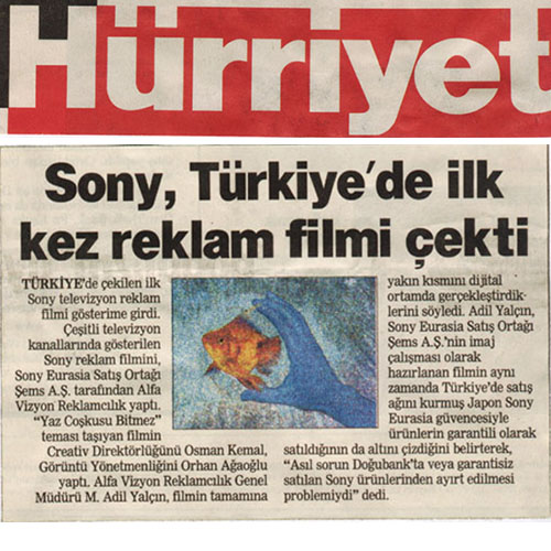 Türkiye'de ilk kez Sony firmasının satış ortağı için hazırlanan ve çeşitli ulusal Televizyonlarda gösterilen reklam filmi çalışması.