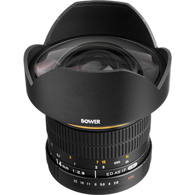 The Bower 14mm f/2.8 Wide Angle Manual Focus Lens is compatible with Canon EOS DSLRs with an APS-C sensor; it features two high-precision aspherical elements and two ED-glass elements. This results in better contrast and sharpness at the outer edges, and a reduction in chromatic aberrations that can sometimes be seen with high-resolution digital SLRs
